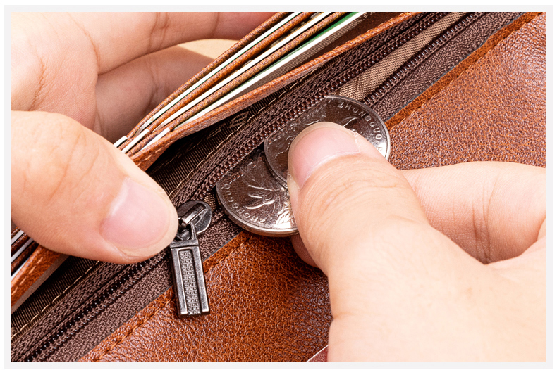 Buzunar interior cu fermoar încorporat, poate plasa monede, schimb și diverse bancnote mici