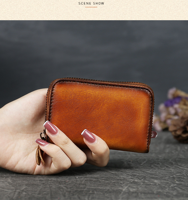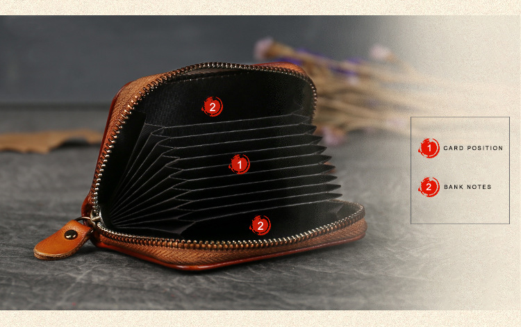 NOU - Suport pentru carduri portofel din piele de vițel vintage