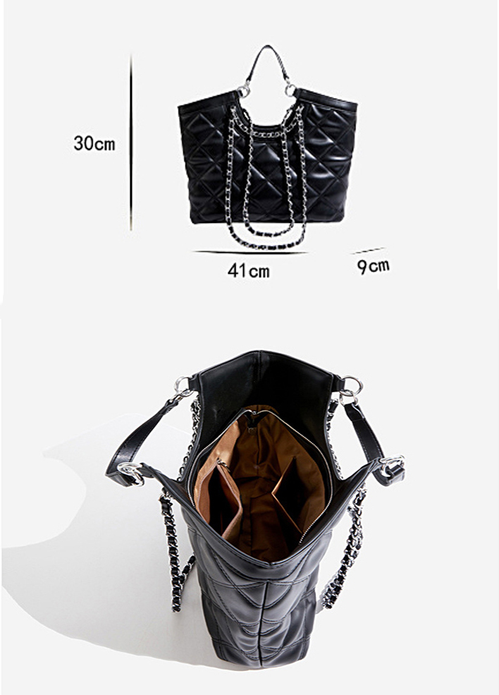Geantă nouă cu lanț din piele de vițel cu diamante de capacitate mare